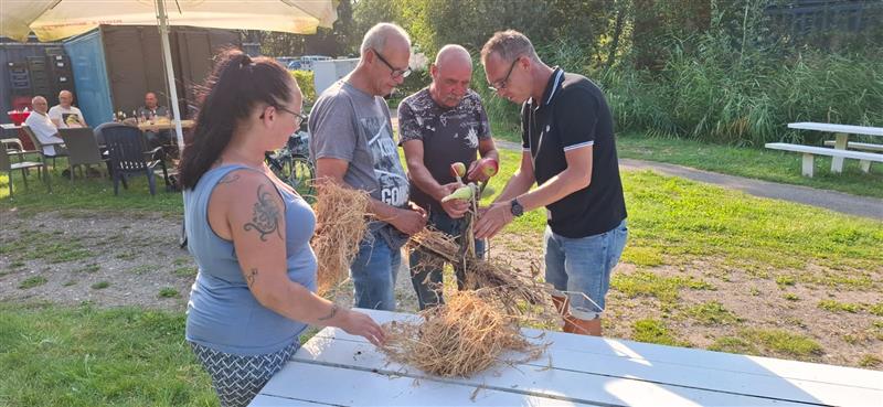 Gelukkig wist iedereen weer heelhuids terug te komen aan de vijver, alwaar onder het genot van een drankje nog enkele spellen gespeeld werden en als eindspel door elke groep een heuse vogelverschrikker in elkaar geknutseld moest worden.